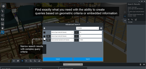 根据属性数据或几何条件搜索和筛选模型。简单快速地找到模型元素及其嵌入的属性和链接的信息。