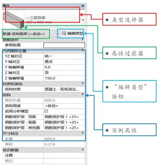 类型选择器的正下方是一个过滤器,该过滤器用来标识将由工具放置的图元类别,或者标识绘图区域中所选图元的类别和数量。如果选择了多个类别或类型,则选项板上仅显示所有类别或类型所共有的实例属性。