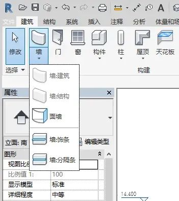 如果有一个用来放置图元的工具处于活动状态,或者在绘图区域中选择了同一类型的多个图元,则“属性”选项板的顶部将显示“类型选择器”。“类型选择器”标识当前选择的族类型,并提供一个可从中选择其他类型的下拉列表。