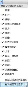 快速访问工具栏可以显示在功能区的上方或下方。要修改设置,请在快速访问工具栏上单击“自定义快速访问工具栏”下拉列表 “在功能区下方显示”。